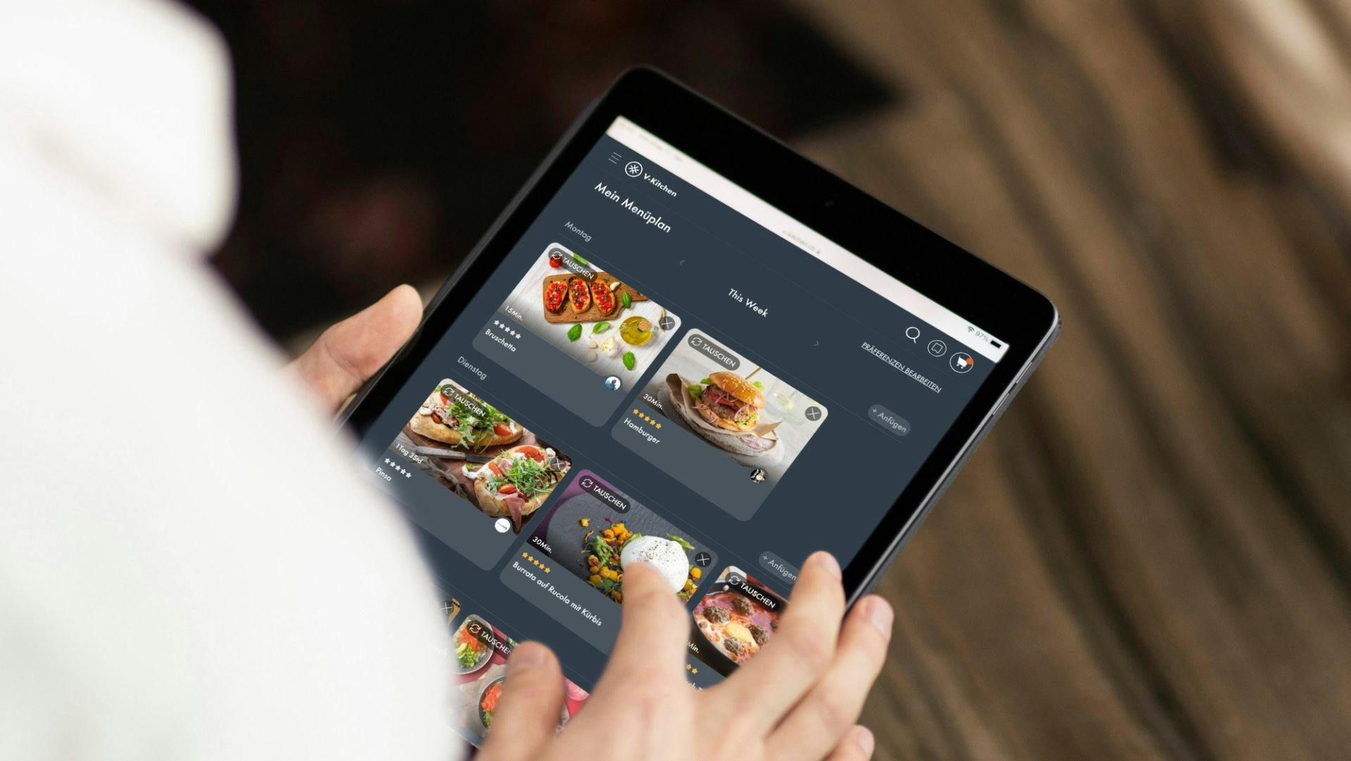 Speichere dir deine Lieblingsrezepte und stelle sie nach deinen Wünschen zusammen. Die kostenlose V-Kitchen App ist ein wertvolles Werkzeug für Inspiration und deine tägliche Mahlzeitenplanung.
